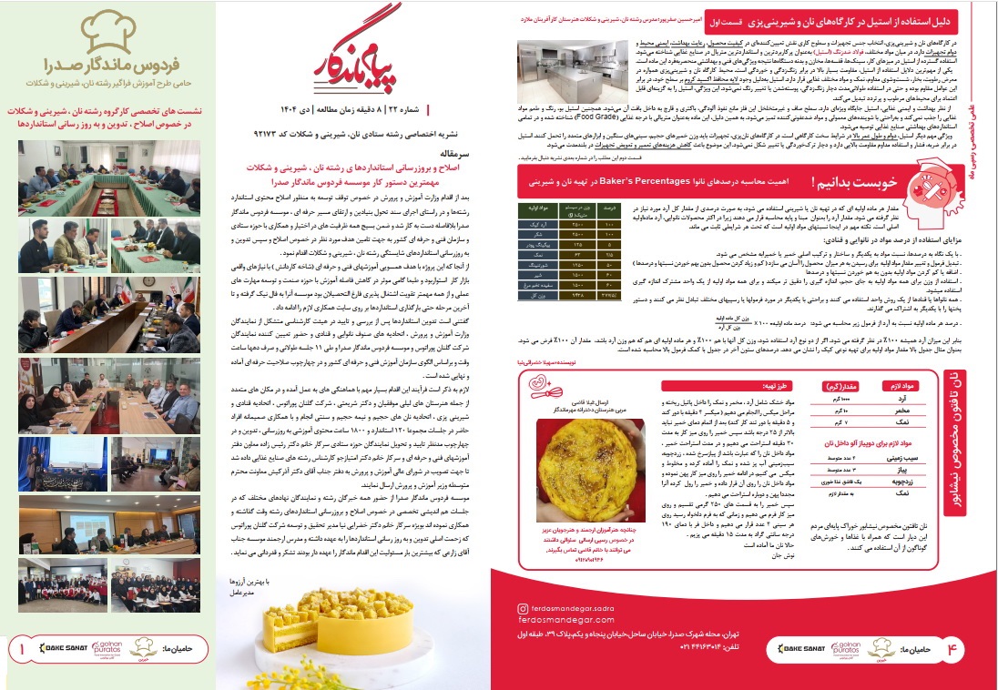آخرین اخبار فعالیتهای موسسه در نشریه پیام ماندگار شماره ۲۲ در دی ماه ۱۴۰۴ منتشر شد. این نشریه علاوه بر ارایه گزارشی از نشست های تخصصی کارگروه رشته نان، شیرینی…